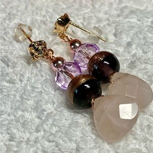 ππgenuine Rose quartz and murano glass earrings with roses -NWT
