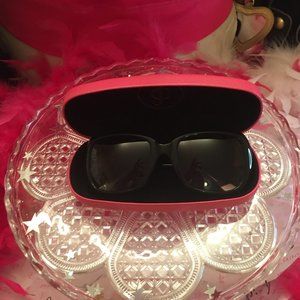 gorgeous brand new never used vinatge y2k authentic black iconic oversized sunglasses with cute silver flower and lgo detail on the sides they come with the hot pink snap case linned in black velvet with gold logo ,see my closet for tons more juicy couture and pls follow me for more to come daily!always open to offers or just hit the like button and ill send u a great one! HAVE A JUICY DAY!