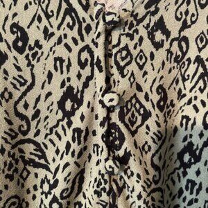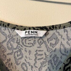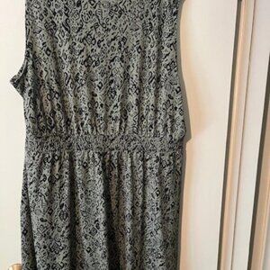 black and green patterned summer dress, sleeveless, 3 buttons on front, elastic waist band, size 3X, length is below the knee, lightweight, 95% polyester 5% elastane, worn once