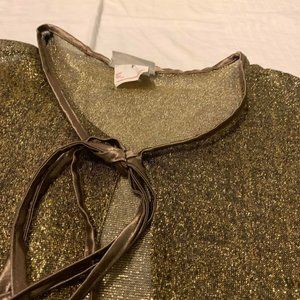 y2k metallic sheer mossy green fairy blouse with ribbon to tie! super cute