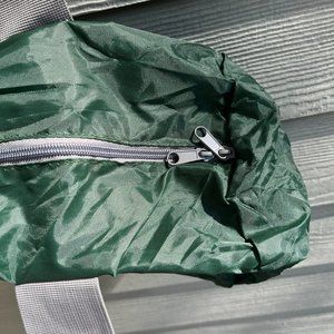 hunter green duffle bag with grey straps that packs into its own little pouch. please note I couldn't find a stock image of the green one on the Coala Tree website so I used the black one (last pic)--this item is *green*. brand new and never used