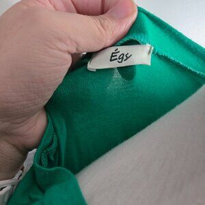 Great Used Condition (GUC/EUC). A vibrant and comfortable color-block tunic top from Égs. This top features 3/4 raglan sleeves and a flowy, relaxed fit in bright green and deep purple/navy blue. The generous cut is perfect for comfortable all-day wear.