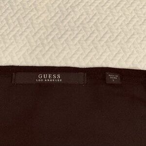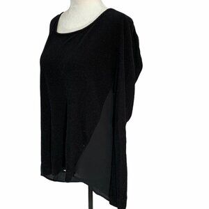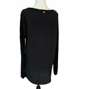 guess Black Sweater/Top Sheer Back Round Neck Lightweight High/Low L