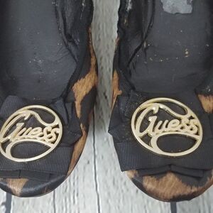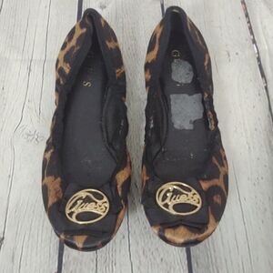 Satin leopard spot GUESS logo ballet flat shoes 7.5