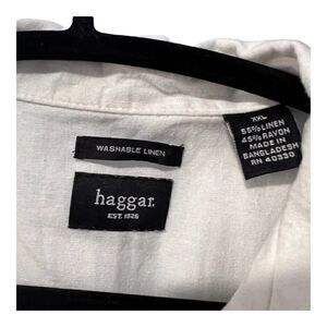 haggar men's linen button down shirt XXL off white/tan‎