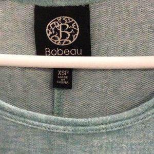 a teal top with a white/cream under layer. the back has a little slit filled with the cream under layer. Only worn once!