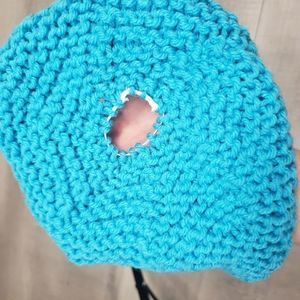 hand Knit Turqoise Hat Beanie Toque Ponytail hat