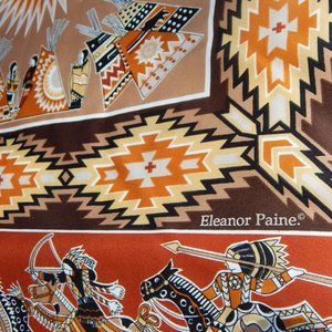 hand painted Inuit First Nations silk scarf, Brown and orange design, 24"x24"