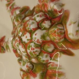 #953 Handmade Ceramic Serving Dish Poinsetta Shape 6 compartment plate 14" Diam Red Green "Maria" on back