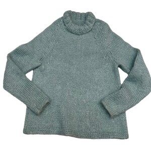 handmade Hand Crafted Blue Acrylic Rolled Neck Sweater Size S/M
