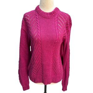 handmade Hand Knit Fucshia Pink Crew Neck Sweater Size L