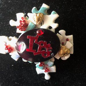 Love is a Puzzle - beautiful handmade brooch, made up of plastic pieces in