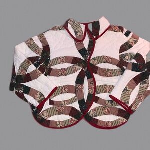 handmade quilt coat vintage quilted jacket L wedding ring red green pockets