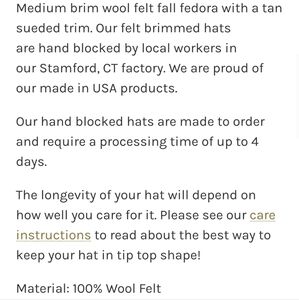*no longer available in this timeless style, model & text show their 'Classic Amelia' Fedora which is very similar style and fit, Org $200USD, wears well through Spring, Summer & Fall!