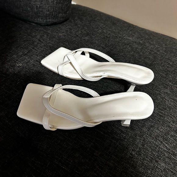 white kitten heels. worn once. size 6.5 Step out in style with these elegant white heeled sandals. Perfect for any occasion, these shoes offer both comfort and sophistication.