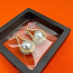 high gloss pearl (faux) chain earring 18k gold finish S925 needle
