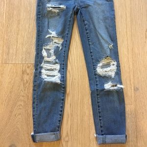 ripped skinny jeans light-medium wash high waisted