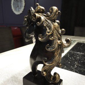 Add a touch of elegance to your home decor with this set of two polyresin horse head sculptures. The golden black color and intricate detailing make these showpieces perfect for any horse lover or enthusiast. Crafted from high-quality resin, these sculptures are durable and long-lasting. The horse head sculptures are perfect for adding a rustic charm to your living room, bedroom, or office. These sculptures are not just decorative, but they also make great conversation pieces. Whether you're a collector or just looking for a unique home decor item, these sculptures are sure to impress.