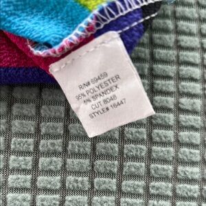 Vibrant swim coverup with multicolor stripes. Perfect for a bold look. Has pockets. Straps are not adjustable. Material is lightweight crepe. Like new.
