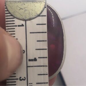 I’m not 100% sure what the large centre stone is though it looks like abalone underneath a pinkish red coloured resin overlay ?