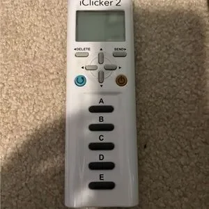 White iClicker 2 remote control with buttons labeled A to E. Basically brand new only used for one class