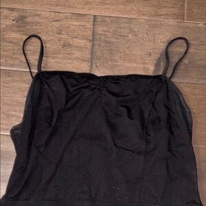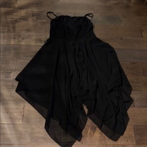 Spaghetti shoulder straps and stretchy top bodice, 2 asymmetric chiffon layers dress.