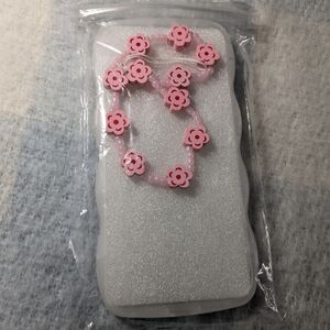 iPhone 14 Pro Max Clear, Cellphone Case, Pink. Floral, beaded chain. NWT.
