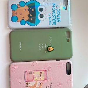 6 phone cases ( sailor moon, avocado green, marble blue and pink, Cookie Monster, pink shiba and peach juice)
