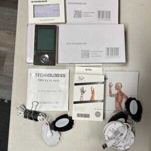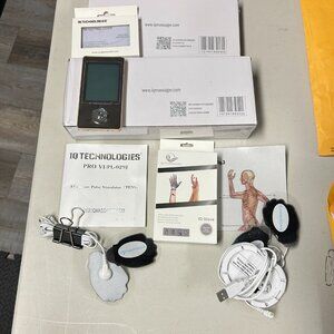 iQ massager device, digital therapy machine, TENS muscle stimulator, pain relief device, portable massager, electronic pulse massager, fitness recovery therapy, health & wellness tech, muscle stimulator with pads, open box TENS unit