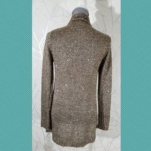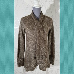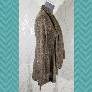 ii Sisters Light Brown Sequined Mohair Blend Open Front Cardigan