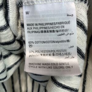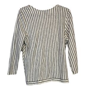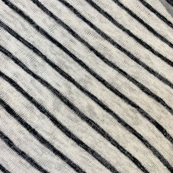 Finely knit. Black and white stripes. Very good condition. Cross over detail in front. Size medium. See photos for measurements.