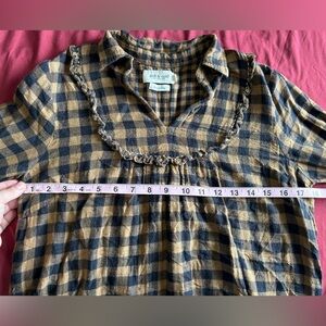 indi & cold gingham plaid ruffle pull over long sleeve blouse