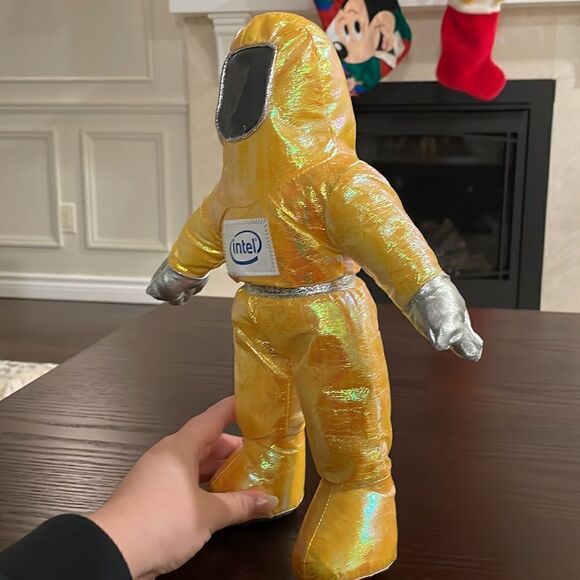 intel Yellow Iridescent Astronaut Space Suit Plush Toy Action Doll EUC 13” long