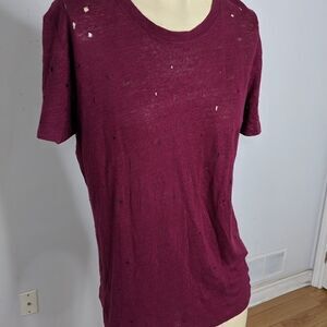 iro - distressed 100% linen burgundy t-shirt