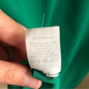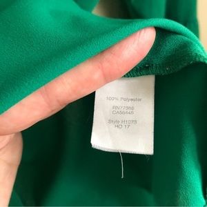 J. Crew polyester bell sleeve blouse in excellent condition from a pet friendly and smoke free home. Flowy and stylish! Colour is more of a grass green than first picture shows (the sun won’t always cooperate with my efforts!) The pictures of the tags show the true colour. Pit to pit is 18 inches.