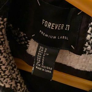 patterned jacket, zipper and decorative closures