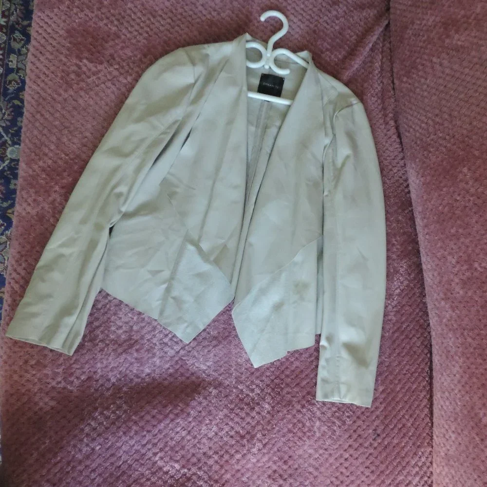hello Cream color jacket very light soft size-Large long sleeve worn but kept like new !!!!!!!!