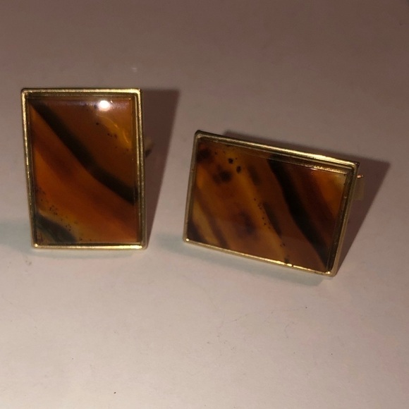 Beautiful rectangular geometric shaped agate stone cufflinks in 12/20 gold filled setting.
