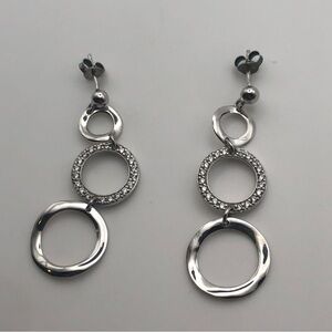 Janinas Diamonds & Time Brand sterling silver & Cz Stone Circle dangle stud earrings.