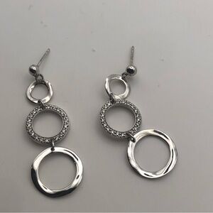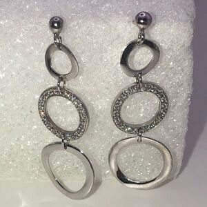 Janinas Diamonds & Time Brand sterling silver & Cz Stone Circle dangle stud earrings.