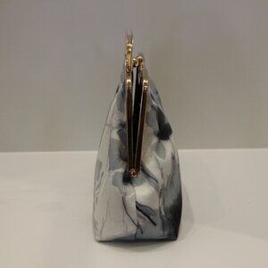 Metal Frame: A polished kiss-lock frame with a geometric handle design, offering both durability and vintage flair.