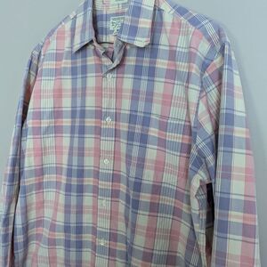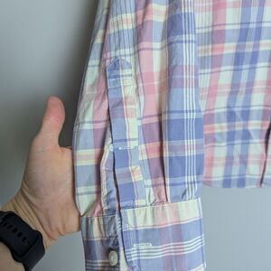 j.crew classic stretch organic cotton secret wash shirting pink purple check M