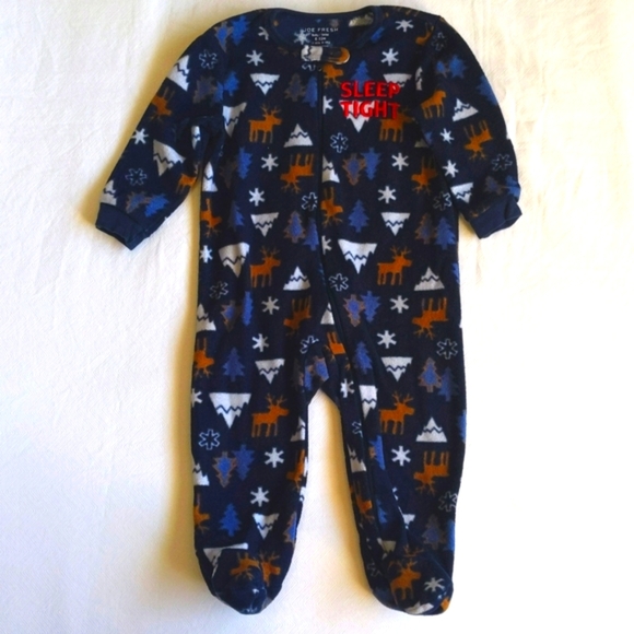joe fresh winter woodland fleece zipper footie sleeper pajamas 6-12 months baby
