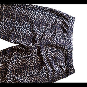Like new, pleat down front of leggings, lovely brown and black animal print, size large, see measurements. 26 inch inseam and 36 inches from waistband to bottom hem of legging.