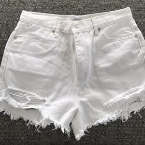 Super cute, ripped white high waisted jean shorts. Great look for the summer. Size Small.