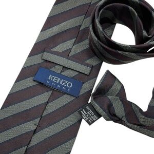kENZO Burgundy/Gray Striped Silk LUXURY Tie ITALY