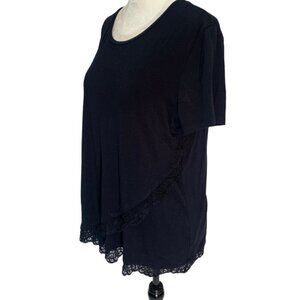 karl Lagerfeld Black T-Shirt Top Lace Hemline with Crossover Detail Size…
