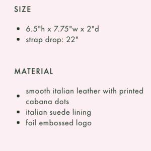 we made this crossbody with love. crafted of cabana dot-printed smooth italian leather molded into the shape of a heart, it's lined with luxe italian suede and roomy enough to carry all the things you love most.