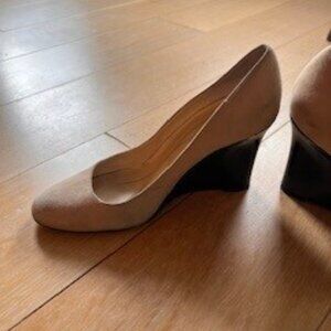 These elegant beige wedge heels by kate spade are perfect for any occasion. They are comfortable and stylish, making them a versatile addition to your wardrobe.