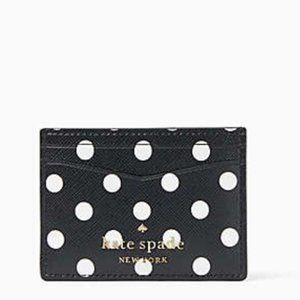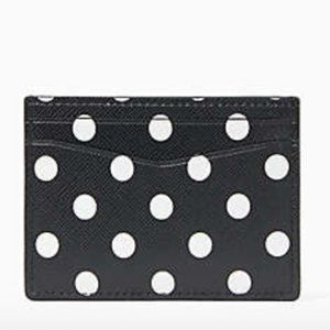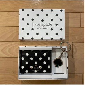 kate spade Cheers Boxed Card Holder and keychain black white polka dot brand new with tags/in box